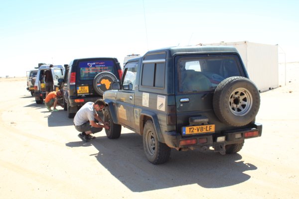 banden leeg laten lopen voor we de Sahara in gaan
